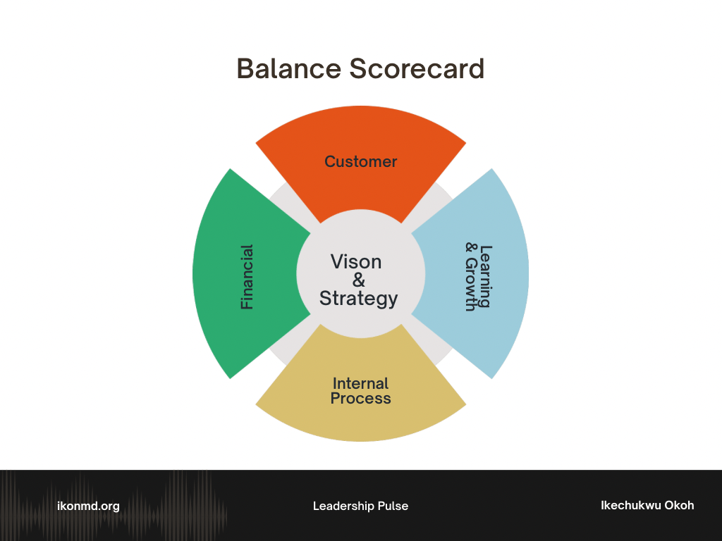 Last year, during one of our coaching sessions with a mid-sized healthcare organisation in Lagos, something remarkable happened. The CEO, an energetic woman named Clara, sat at the head of the conference table surrounded by her leadership team. They had come to us feeling frustrated. Despite their growth, profits remained flat. Employee turnover was high. And their ambitious mission statement, which was to become West Africa’s most trusted integrated health system, felt more like a slogan than a shared direction. | When I asked what their strategy was, Clara smiled. “We’re customer-focused,” she said. “We deliver quality care and expand access.” Her CFO added, “We’re trying to manage costs.” Their HR head chimed in, “We want to build a great culture.” Everyone was right. Yet everyone was speaking a different language. That was the moment I introduced them to one of the most transformative tools in modern management called the Balanced Scorecard. |